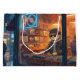 A cool cat browsing through vinyl records in a music store on a rainy evening.
