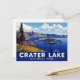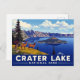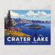 Vintage-style WPA travel poster art depicting the iconic deep blue waters of Crater Lake National Park, Oregon, featuring Wizard Island and two deer standing on the foreground ridge among pine trees. Captures the stunning beauty of the caldera lake. Perfect souvenir for national park visitors, wildlife lovers, and fans of retro nature poster art.