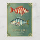 It features two gorgeous freshwater fish (bass), each with stripes in the nautical colours red and blue. Plus, it has all the essential info, like Crater Lake's coordinates and the customisable text for the state and/or city.