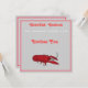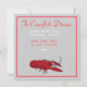 Craw fish cookout invitation with a red graphic craw fish ( from open clip art library ).Invitation template by Alma Wad. Customise it with the details of your own cookout party .