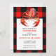 Beautiful Summer Seafood Crawfish Boil Party Invitation with Large Red Crayfish and Rustic Red and Black Plaid Background. Customise with your party's details.