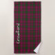 Stylish beach towel done in the classic green and orchid Scottish clan Crawford tartan plaid pattern. Personalise the large white text to suit your needs.