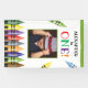 Crayons line the bottom of the birthday banner in multiple colours, including green, orange, blue, and pink. Birthday photo takes centre stage with a few crayons scattered about. "_____ is ONE!" above the photo in a fun font, with a green bar at the top. Easily change the top border and photo backdrop to another colour if you wish. Super fun and cute with the other pieces in this collection.