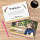 Double sided thank you card matching the other pieces in this collection. Pink, yellow, and green bars at the bottom, with crayons in the same colours. Plenty of room to customise and a sweet birthday pic is on the back.