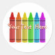 Personalise this colourful, vector drawn crayon design using the template, or click "customise it" to modify the design further. Featuring a rainbow of vector-illustrated crayons in red, orange, yellow, green, blue, and purple.