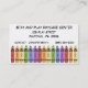 This design features a few happy crayons. Do you own your own daycare business? These cute business cards are great for you. The TEXT can be customised with your own information by going to the text boxes and changing them.