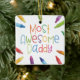 This is a lovely ornament, and great that you personalise the back with details of birthday, weight, etc.. My only tiny disappointment is the "My First" doesn't stand out very well on the background. More than happy with the printing of the photo and the writing on the back.