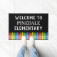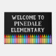 School welcome doormat with row of crayons at the bottom! Perfect for entry doors or door to office. See our classroom welcome doormats as well.