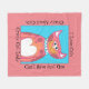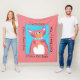 Colourful cat theme fleece blanket, with cartoon graphics of a orange, pink, and white cat set in a sky blue background and decorating the middle of the coral pink blanket. Custom black text, around the cat picture, can be personalised to read what you want. The purrfect blanket for any kitty lover.