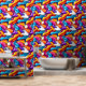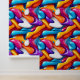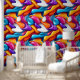 Elevate your space with this striking wallpaper, designed for lovers of bold maximalist style. This wallpaper features a captivating fusion of abstract, fluid shapes, this design bursts with electric blues, vivid oranges, deep purples, and crisp whites. The dynamic composition creates a sense of movement and depth, while its glossy finish adds a sleek, modern edge. Perfect for those who embrace vibrant colours and dramatic design, this wallpaper transforms any room into an energetic, eye-catching statement, infusing your space with personality and flair. generativecontent