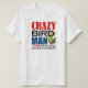 A funny drawing of a bird dad wearing a green super hero costume with text: "Crazy Bird man" in unique fun fonts. Perfect gift ideas for bird lovers, parronts, especially bird daddies who call themselves crazy bird men. Available as t-shirts, mugs, bags and many other merchandises.:)