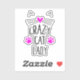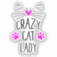 Crazy cat lady in uppercase sans handwritten style font lettering typography with two neon pink paw prints and a pink that serves as a cat nose with black whiskers and two triangle ears.