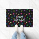 Greet your guests while showing your love for kitty cats with this cute and colourful paw print patterned door mat! The words "Crazy Cat Lady" are in white and all are over a black background which you can change to your favourite colour. =^..^=