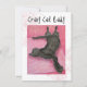 Funny indie cartoon cats birthday invitations. Unique cat painting only available from Laura Davies Art. Black cat on a pastel painted pink background. Funky indie pattern in pale pinks www.mohaafterdark.deviantart.com, Cool fonts ready for you to personalise, change colour and size.