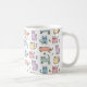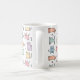 A cute crazy cat lady mug. A pattern of cartoon cats in pastel colors including pink, purple, blue, yellow, orange and green are surrounded by flowers and fish.
