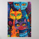 Crazy Cute Cats: Bright Doodle Cartoon Banner Poster