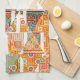 Crazy Diamond Floral Art Pattern Orange Kitchen Tea Towel