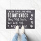Introducing the perfect door mat for all dog lovers out there! This modern and stylish mat is the ideal way to welcome guests into your home with a touch of humour and cuteness. The faux slate material is both durable and environmentally friendly, while the paw prints and the playful phrase "Crazy Dogs Live Here...DO NOT KNOCK...They will bark, we will yell, it will get real" will bring a smile to anyone's face.