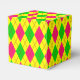 Crazy Kids Colours (CKC)-Argyle-PARTY FAVOR BOX, square heart box style-This design comes from a new collection of Crazy Kids Colours art work. Strong and bright crazy colours have created layer after layer of crazy fun perfect for children and adults alike. This particular design is an allover background argyle pattern. The colours in the collection include: purples, blues; pinks, yellows and neon green. It's a bold burst of colours kids will love. Mix and match coordinating Zazzle gifts are available in the Crazy Kids Colours Collection. Choose any style/quantity of Zazzle party favour boxes.