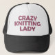 Cute knitting saying design with knitted yarn overlay in pink. Cool gift for women who love to knit.