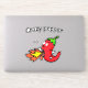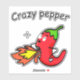 Crazy Pepper Funny Red Chilli Hot Vegetables Sticker | Hand drawn chilli hot vegetables. Isolated funny cartoon character vector illustration. Organic vegetable. Healthy vegetarian lunch. Cooking food. You can change the text