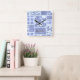 Crazy Quilt Blue Gingham Floral Personalised Square Wall Clock