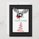 Christmas party invitation. A quirky illustration of a black and white christmas reindeer, with a bright red nose. Breaking his way through some wrapping paper, looking crazy and bewildered. Customise with your party details.