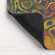 A cool Mousepad, with an abstract pattern of crazy swirls in shades of dark, blue, dark green and brown with golden yellow highlights.