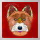 Unique crazy West Highland White Terrier face with bold, colourful abstract patterns on a red background. Popular with dog lovers and pet lovers and rescue dog lovers.