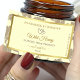 Enhance your product packaging with these modern and professional custom labels, featuring a chic double heart symbol and calligraphy lettering. Designed with an elegant rectangular gold frame and a delicate cream-coloured floral pattern, these labels add a touch of sophistication to any handmade products, small businesses, wedding favours, and gift wrapping.
