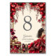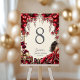 Cream and Red Golden Tiara Floral Quinceañera Table Number