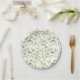 Elegant cream paper plates with delicate floral print in sage green tones