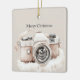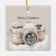 Cream Beige Camera Stripes Christmas Ceramic Ornament