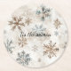 Cream Blue Brown Snowflakes Christmas Round Paper Coaster