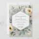 Delicate, muted floral artwork graces this design with an ethereal and romantic mood. Soft cream blossoms mingle with delicate foliage in shades of grey and pale green, creating a sophisticated and airy aesthetic. The botanical elements evoke a sense of timeless elegance.