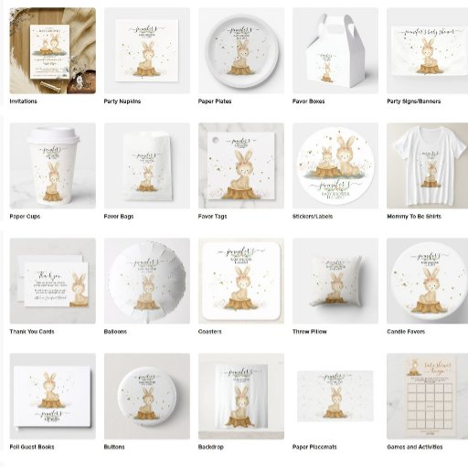 Cream Bunny Rabbit Botanical Floral Baby Shower