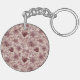 Cream Burgundy Red Hearts Flowers Key Ring