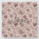 Cream Burgundy Red Hearts Flowers Stone Coaster