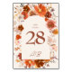 Cream Burnt Orange Floral Botanical Arch Wedding Table Number