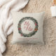 This festive country wedding "Mr. & Mrs." Christmas throw pillow features hand-drawn western illustrations of a pine wreath with cowboy boots, cowboy hat, holly berries, cacti and vintage xmas ornaments in black ink against an elegant cream background. Personalise with your family initial and name to make it uniquely yours.