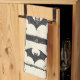 Off-white denim Halloween patchwork kitchen towel with stitched bats in flight. Distressed, grunge-style texture with bold stitches creates a rustic gothic aesthetic. Ideal for bat lovers, gothic décor, or unique Halloween gifts.