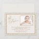 Add your own photo to this Baptism photo card invitation with cream floral border, stylish Baptism typography with butterfly accent and cream rosary beads with cross adorning the picture frame. Just upload your own photo for a special invitation or announcement. Invitations are easy to customise and come complete with envelopes and your choice of paper.