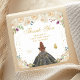 Cream Floral Brown Hair Princess Birthday Party Square Sticker