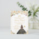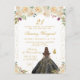 This elegant and glamourous birthday party invitation features a beautiful princess with brunette hair and fair skin in a black ball gown. The text combines handwritten script and modern sans serif fonts for a classy and sophisticated look. The floral arrangements, butterflies and gold confetti create the perfect blend of rustic and chic.