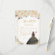 This elegant and glamorous sweet sixteen rsvp card features a beautiful princess with brunette hair and fair skin in a black ball gown. The text combines handwritten script and modern sans serif fonts for a classy and sophisticated look. The floral arrangements, butterflies and gold confetti create the perfect blend of rustic and chic.