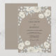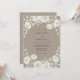 Delicate cream blossoms and soft grey-green foliage create an elegant, enchanting border. This design evokes a romantic and timeless feel, perfect for a sophisticated celebration. The muted colour palette offers a refined aesthetic.