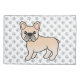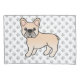 Destei's original cartoon illustration of a cute cream coat colour French Bulldog breed dog. The background has a pattern of grey dog paw prints.