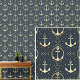 Nautical Cream Gold Anchors & Rope on Dark Grey Blue Wallpaper