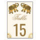 Cream Gold Ethnic Elephants Indian Wedding Table Number