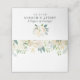 Folded style escort place cards feature an elegant watercolor border design with spring and summer painted roses, ranunculus flowers, and leaves in neutral shades of white, cream, blush pink, gold, green and soft black. Personalise the custom monogram (on back of card) with the bride & groom names and wedding date. The back / underneath side of the card is a coordinating soft green colour with abstract brushed dot pattern. Style tip: write the guest name / table number below the floral design with a black or metallic gold pen.